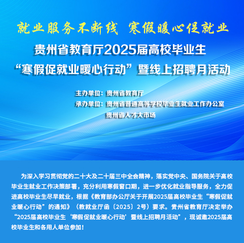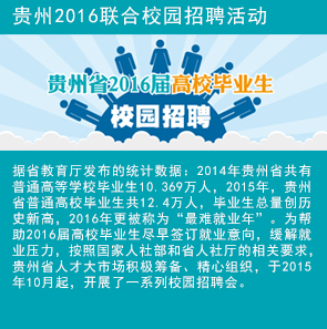貴州省人才大市場結合多年校園招聘活動的經(jīng)驗,從提供簡單的招聘會展服務,逐步演變成為提供高校就業(yè)招聘平臺、就業(yè)政策宣傳、企業(yè)形象展示、就業(yè)指導服務、高校畢業(yè)生人才庫等綜合性服務,并建立與高校就業(yè)管理部門的長期合作機制,以更好推動高校畢業(yè)生就業(yè)工作。