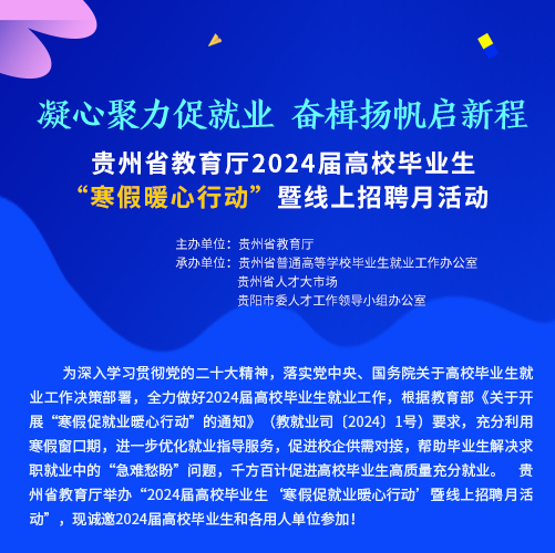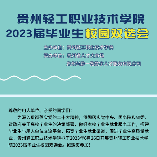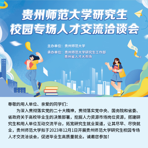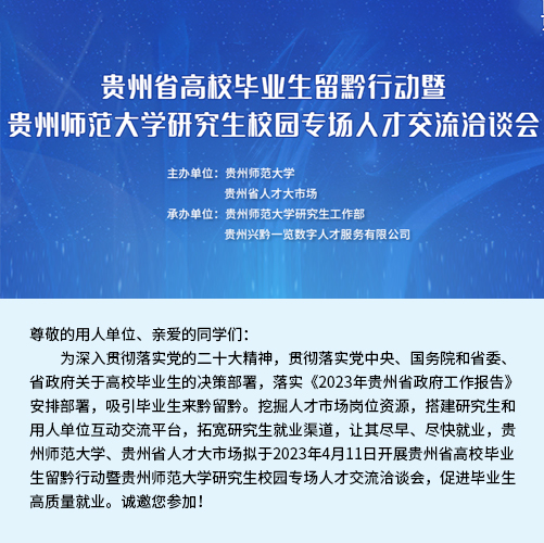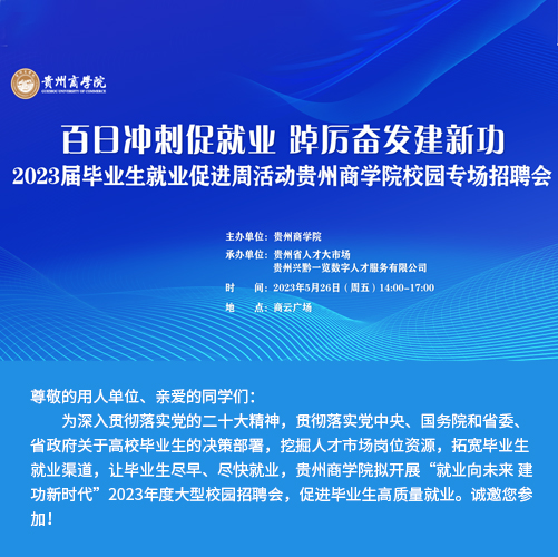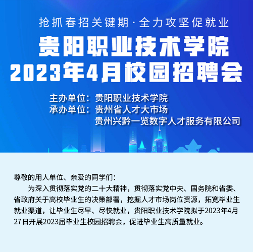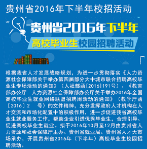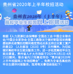 近二十年時間里,貴州省人才大市場主辦的校園招聘會涵蓋了貴州省內(nèi)各大高校,包括貴州大學、貴州師范大學、貴州財經(jīng)大學、貴陽學院、貴陽中醫(yī)學院、貴州職業(yè)技術學院等。每年根據(jù)高校畢業(yè)生的就業(yè)特點開展十多場專場校園招聘會,組織上千家單位提供上萬個招聘職位。每場校園招聘活動,貴州省人才大市場都精心組織,根據(jù)學校自身的特色專業(yè)挑選出百余家需求專業(yè)契合的單位進入校園,并與高校緊密合作進行宣傳和組織,大大提高了求職成功率,每年達成錄用意向數(shù)千人。招聘活動期間,還向?qū)W生宣傳最新的就業(yè)創(chuàng)業(yè)政策,以實際行動踐行著“以人為本,服務社會”的宗旨,營造積極就業(yè)的良好社會氛圍。