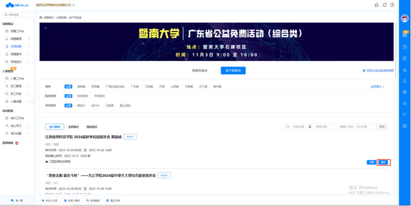 第一步:選擇貴州理工學(xué)院2025年秋季大型雙選會(huì),點(diǎn)擊報(bào)名按鈕,進(jìn)入雙選會(huì)報(bào)名界面。