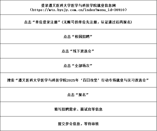 1、報(bào)名成功后,貴單位招聘信息將掛遵義醫(yī)科大學(xué)醫(yī)學(xué)與科技學(xué)院就業(yè)信息網(wǎng)進(jìn)行精準(zhǔn)宣傳;